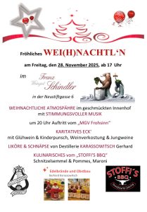 Zur Einstimmung auf die Adventzeit findet wieder unser Wei(h)nachtl‘n im geschmückten Innenhof statt!